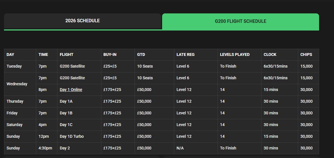 G200 in 2026,Round 15 - Glasgow MC Grosvenor Casino