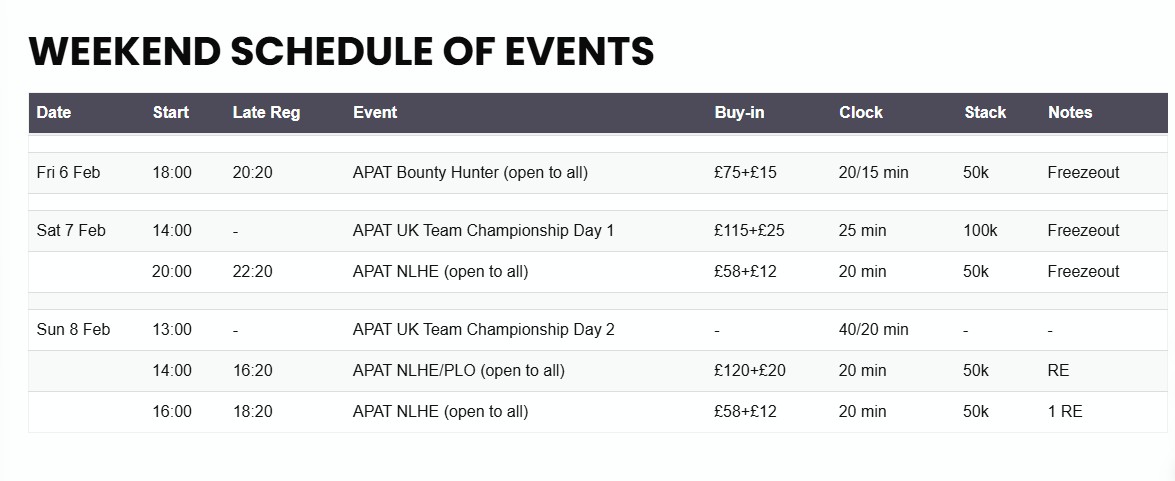 The Amateur Poker Association & Tour (APAT), Dusk Till Dawn Nottingham, England
