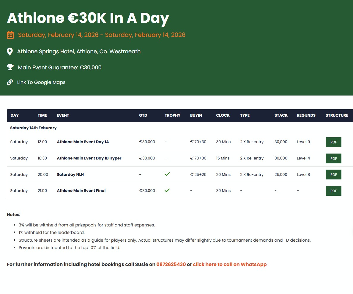 IPT, Athlone €30k in a Day, Athlone Springs Hotel